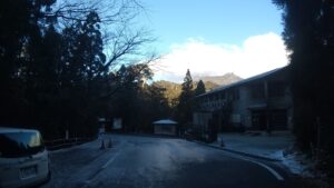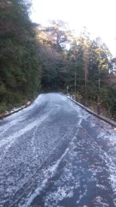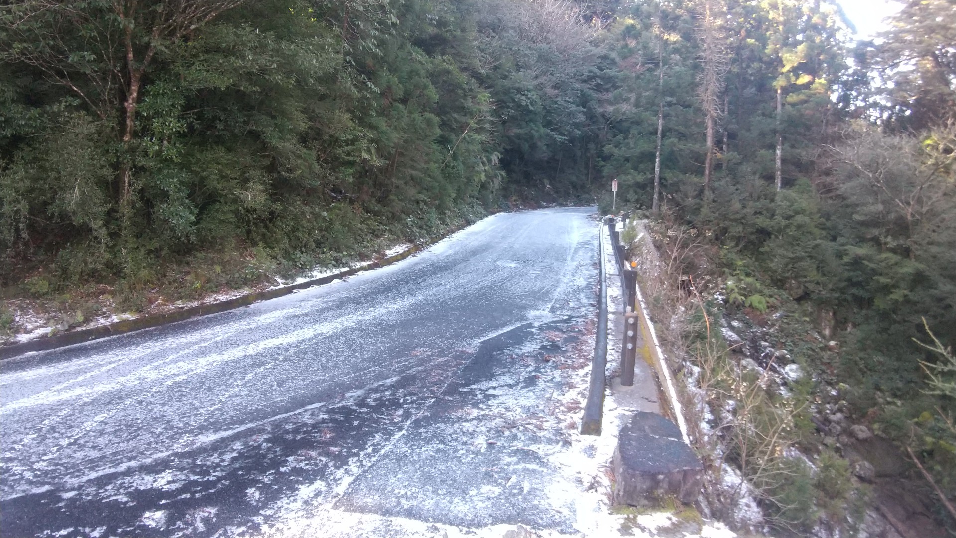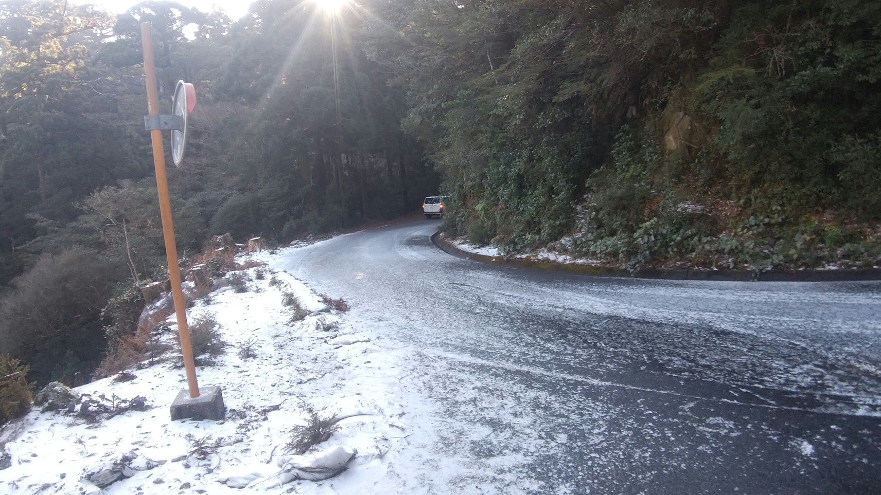 <紀元杉方面の道路状況> ・ヤクスギランド~淀川登山口 車両通行止め(路面凍結のため)9:00~ (8:40)